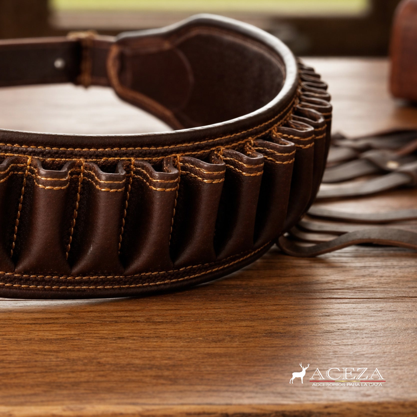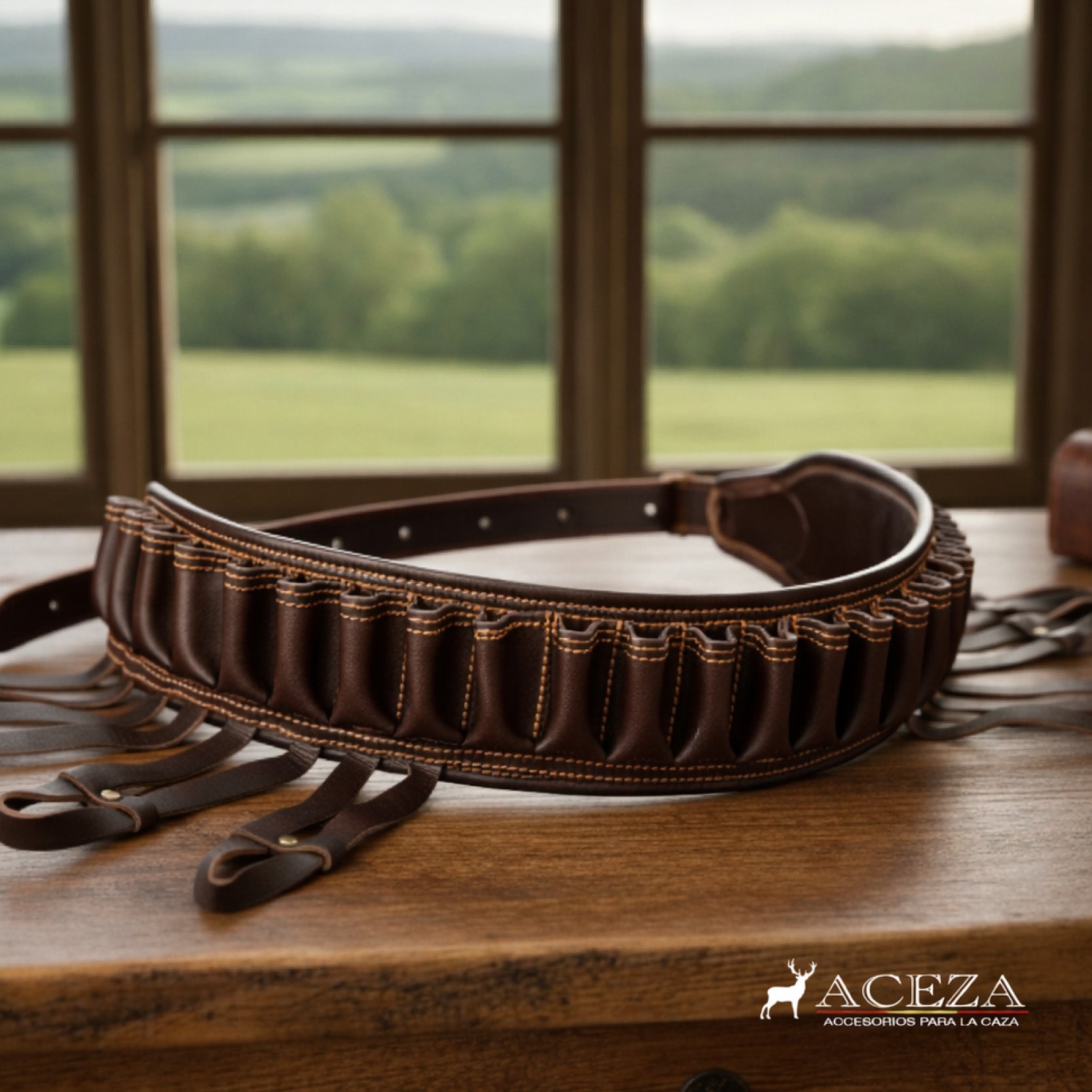 Esta canana de cuero artesanal está pensada para la caza de siempre, para quienes buscan un accesorio sencillo, bien hecho y que cumpla su función temporada tras temporada. Fabricada en cuero natural de color oscuro, ofrece un tacto firme y una estructura sólida, pensada para el uso continuo en el campo.